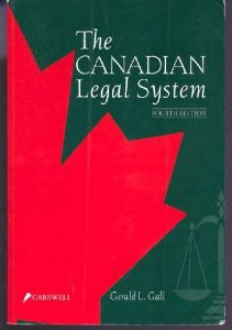 The Canadian Legal System, 5th ed., 2004, by Gerald Gall et al. (KE444 .G34 2004) covers all aspects of Canada's legal system and its legal institutions. Beginning with the nature and sources of Canadian law, the author examines the constitutional division of legislative powers, and the impact of the Charter on legislative authority. Separate chapters detail the role and hierarchy of the courts, the role of judges and lawyers, and the principle of stare decisis in shaping judge-made law with a special chapter on the Quebec legal system.